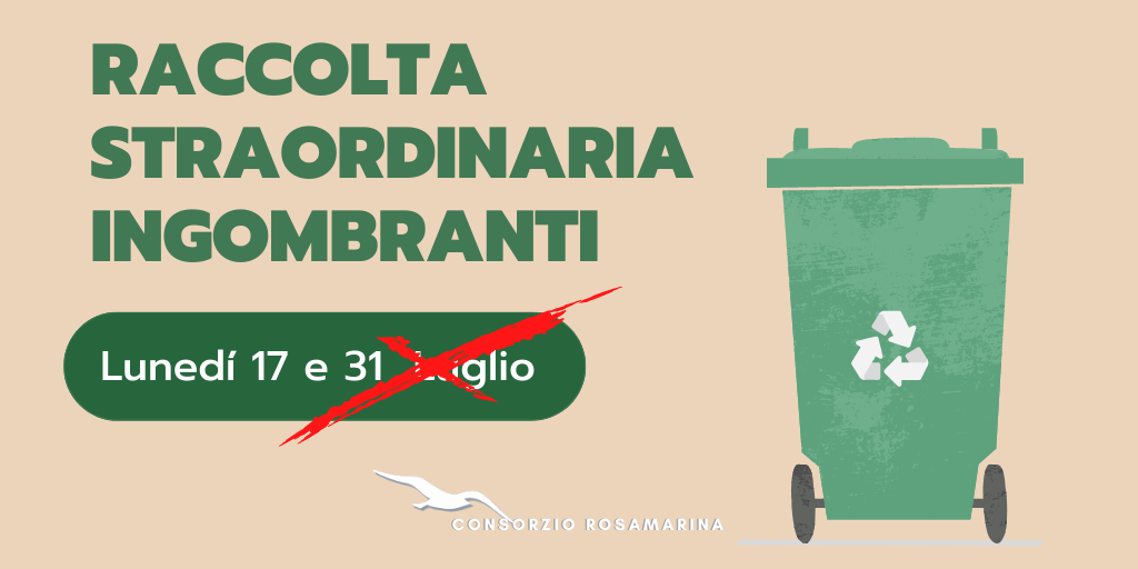 Informiamo i Consorziati che Giovedì 18 Luglio verrà effettuata la raccolta dei rifiuti ingombranti da parte della ditta incaricata dal Comune di Ostuni. Vi preghiamo pertanto di depositarli dalle ore…
